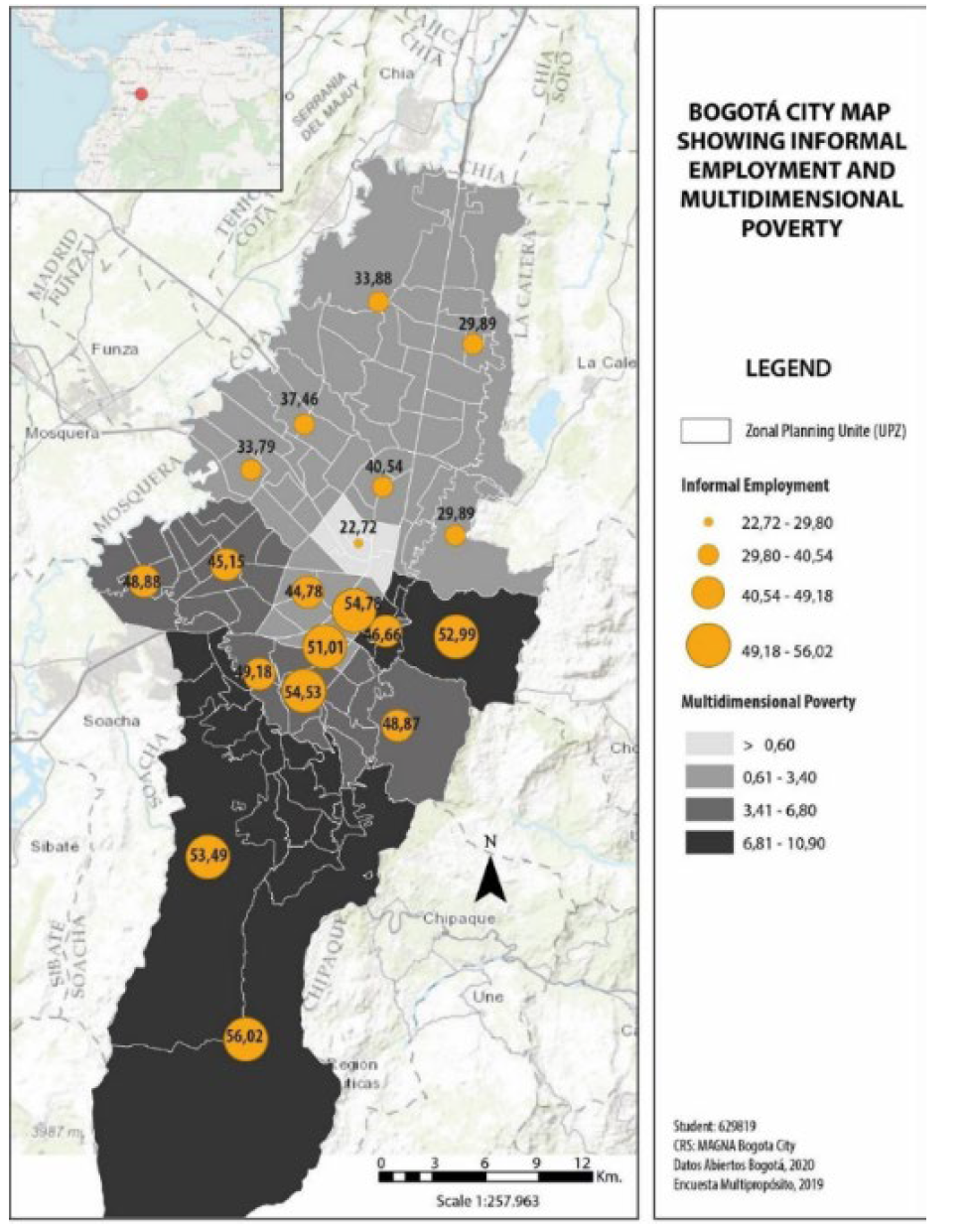 Fig 5: Poverty map in Bogotá (URBAN DISPLACEMENT PROJECT, 2021)