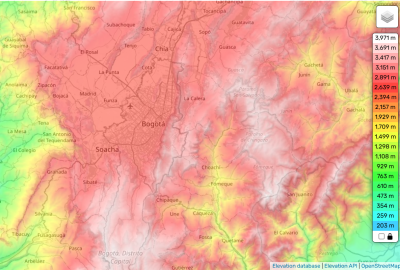 Fig 4: https://en-gb.topographic-map.com/map-5gj9m/Bogota/?center=4.62069%2C-74.12179&zoom=10 According to the map, the local [14] typology in Bogotá is hilly with flat land concentrated in the city centre. Therefore, this geographic characteristic has created social inequalities that the poor and rich population are separated by green spaces. This phenomenon, termed social-spatial segregation has deeply rooted in the history urban development of Bogotá from the colonial industrialization, contributing to an ongoing issue urban urban-rural imbalance.